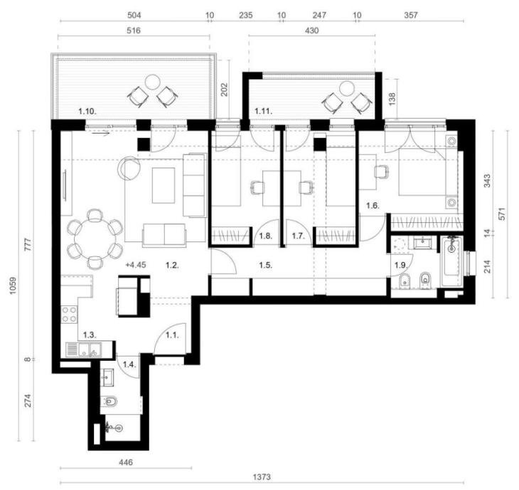 - Unutarnja stolarija: lakirana je u mat bijeloj boji sa skrivenim pantima, magnetnom bravom te zvučno izoliranim krilom koji je ispunjen ivericom. Ulazna vrata u stan su protuprovalna/ protupožarna te zvučno izolirana s master key sistemom marke Dierre van standardne dimenzije (izvedba visokog standard).