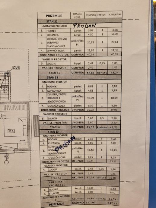 UKUPNI PRODAJNI PROSTOR NETO = 51,12m2 - UKUPNO BRUTO 59,52m2