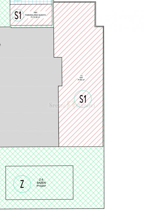 Stanu pripada i vlastito vanjsko parkirno mjesto povrsine 12,50 m2 u okućnici zgrade.