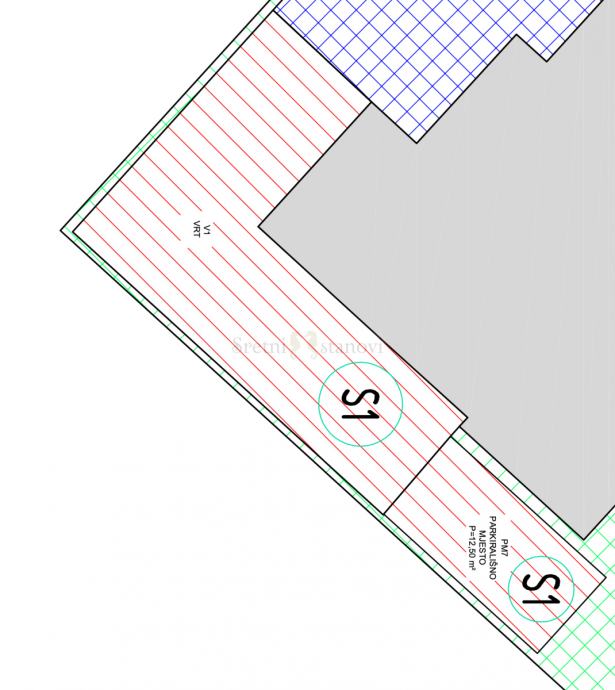 Stanu pripada i vlastito vanjsko parkirno mjesto povrsine 12,50 m2 u okućnici zgrade.