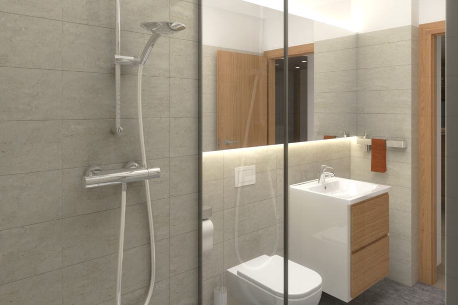 - Kupaonice i wc: sanitarija poznatih svjetskih brandova visoke kvalitete Villeroy & Boch….. (Laufen, Duravit). Konzolne Wc školjke s ugradbenim vodokotlićima. Predviđena je mehanička odsisna ventilacija kupaonskim ventilatorima s niskom razinom buke. Na umivaonicima, tuš kadama i kadama predviđene su miješalice Hansgrohe (Grohe).