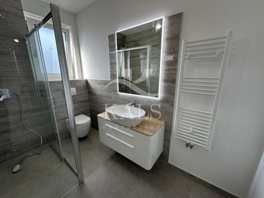 Grijanje je preko dizalice topline, podno u svim prostorijama uz mogućnost kontrole temperature za svaku prostoriju. U kupaonici su pločice "A" razreda, dok je u ostatku stana postavljen parket. U stan je ugrađena troslojna PVC stolarija s električnim podizačima "žaluzina" te komarnicima.