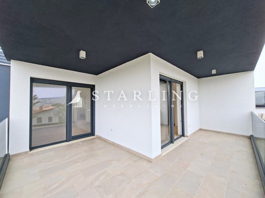 Stan se sastoji od open space dnevnog boravka s kuhinjom i blagovaonicom, dvije spavaće sobe, kupaonice, zasebnog WC-a i prostrane terase.