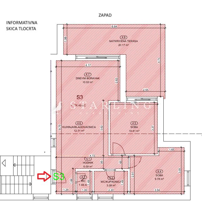 Prodaje se trosoban stan neto površine 71 m2 na prvom katu zgrade bez lifta.