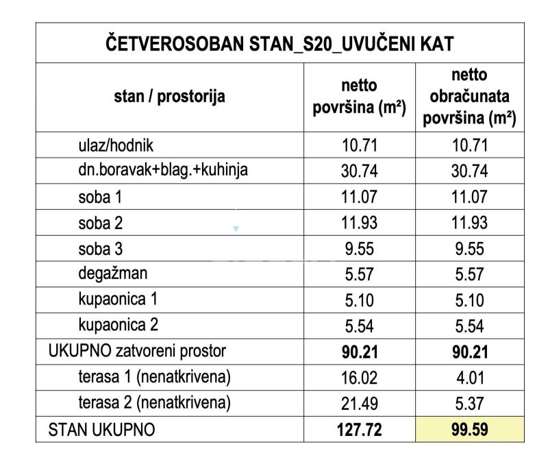 Prodaje se četverosobni stan s20 površine 102,77 m2 na 3. katu zgrade s liftom.