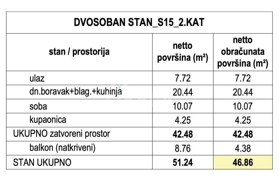 Prodaje se dvosobni stan s15 površine 48,46 m2 na 1. katu zgrade s liftom.
