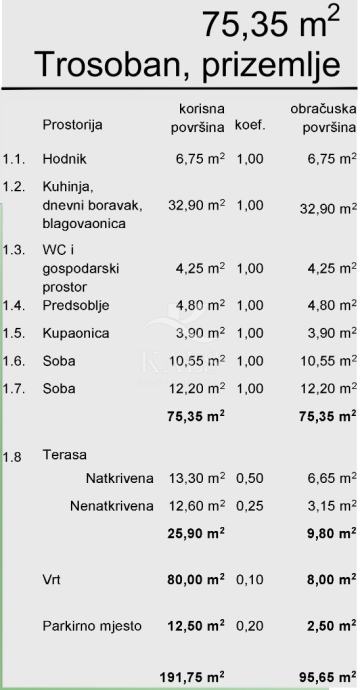 Mogućnost kupnje i vrta površine 80 m2.