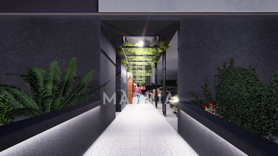Potpunom užitku stanovanja doprinosi pomno uređen okoliš zgrade u kojemu je predviđeno dječje igralište kao i zelene površine.