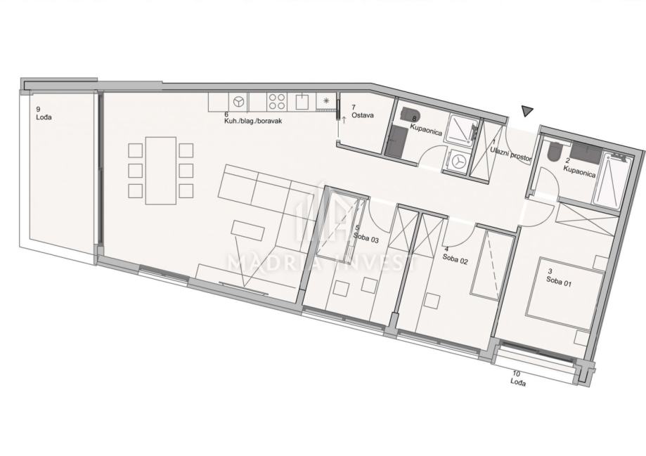 Moderne i komforne stanove odlikuju prostrane loggie južne ili jugoistočne orijentacije koje pružaju visoku kvalitetu stanovanja sa velikom količinom dnevne svijetlosti.