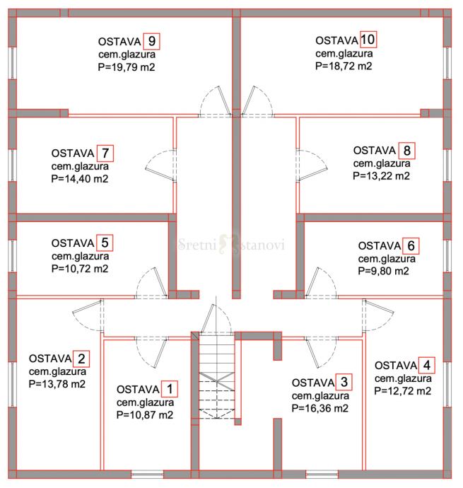 Stanovi i zgrada se opremaju vrhunskom opremom: video nadzor okućnice, kameno stubište, električno podno grijanje svih prostorija u stanu, klima uređaj u svim sobama, 3-slojna stakla, elektro podizači roleta, komarnici, video portafon,...