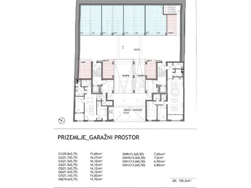 Sveukupno je u zgradi 21 stambeni prostor, te 56 garažnih prostora.