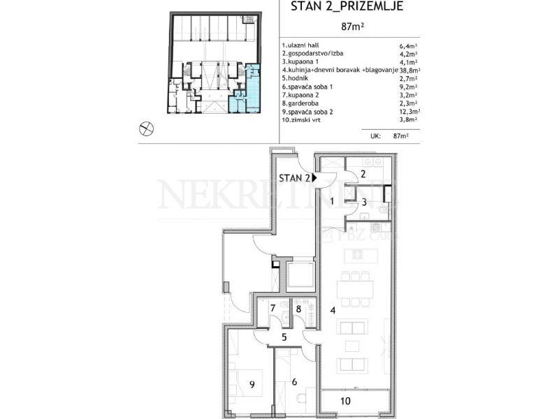 Ovaj stan oznake S2 se nalazi u prizemlju objekta.