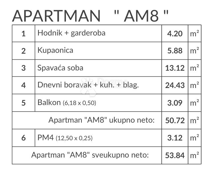 Stanovi su različitih površina i kvadratura te tako imamo nekoliko stanova s jednom spavaćom sobom (1S+DB) te nekoliko stanova s dvije spavaće sobe (2S+DB). Svakom stanu pripada po jedno parkirno mjesto smješteno ispred same zgrade.