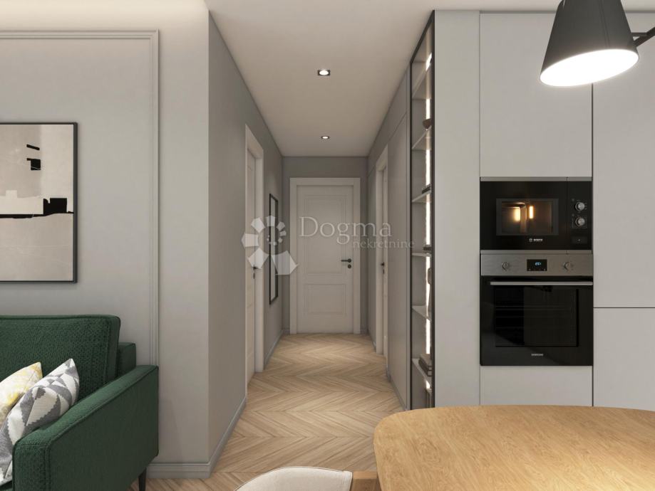 Podne obloge u stanovima bit će mješavina prvoklasne keramike (kupaonice, kuhinja i dnevni boravak te terasa) te prekrasnih parketa u spavaćim sobama. Vanjske otvore krasi aluminijska stolarija s električnim roletama i komarnicima te s naglaskom na veličinu samih prozora što daje puno svijetla u sami stan. U cijenu stanova po projektu dolazi podno grijanje u kupaonici dok se, po želji, u fazi gradnje može doplatiti za postavljanje istog u cijeli stan. Klima jedinice nalazit će se u svim prostorijama (spavaće sobe + dnevni boravak) te su one inverterskog tipa predviđene za maksimalnu učinkovitost pri grijanju i hlađenju. Uz to po želji kupca mogu se uvrstiti i drugi načini grijanja/hlađenja sve uz doplatu.