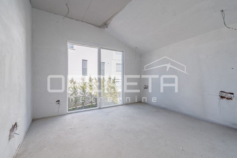 Stan se sastoji od veliko otvoreni dnevnog boravka s blagovaonicom i kuhinjom, tri spavaće sobe gdje svaka ima vlastitu kupaonicu s toaletom, gostinjskog toaleta, prostrane lođe s otvorenim pogledom i spremištem. Stanu pripada dva parkirna mjesta s dodatnim uređenim prostorom koji može poslužiti kao dodatni parking.