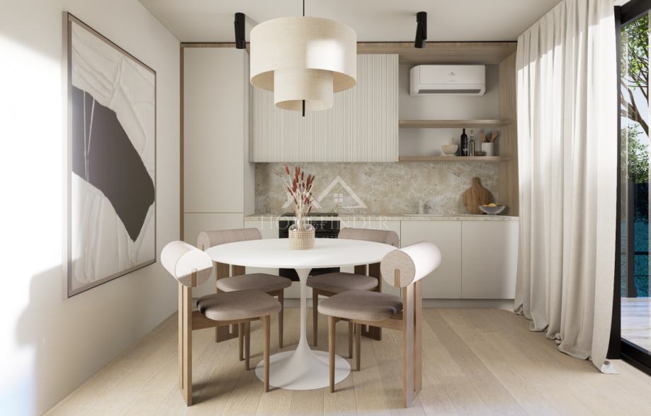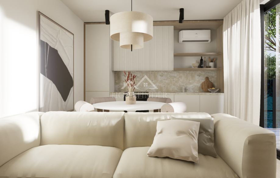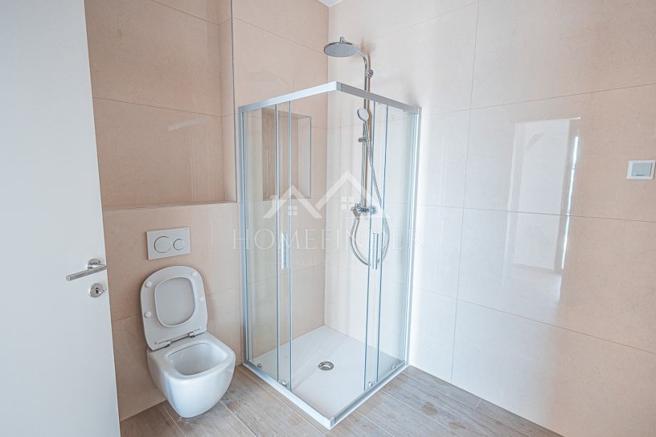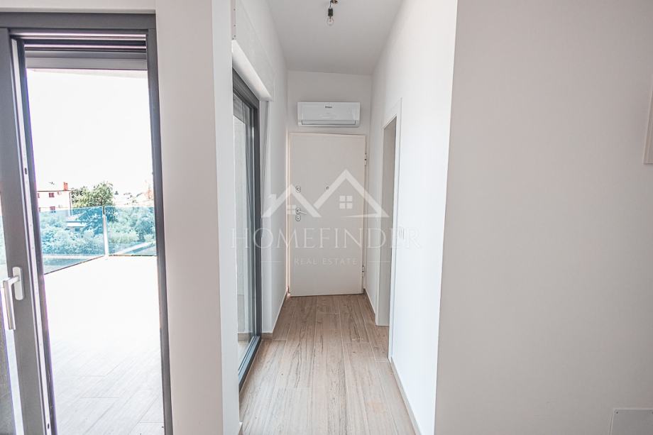 Kvalitetna gradnja uključuje podno grijanje u kupaonici, klimatizaciju, aluminijsku stolariju te električne rolete s integriranim komarnicima. Uz stan dolazi jedno parkirno mjesto te spremište od 5 m².