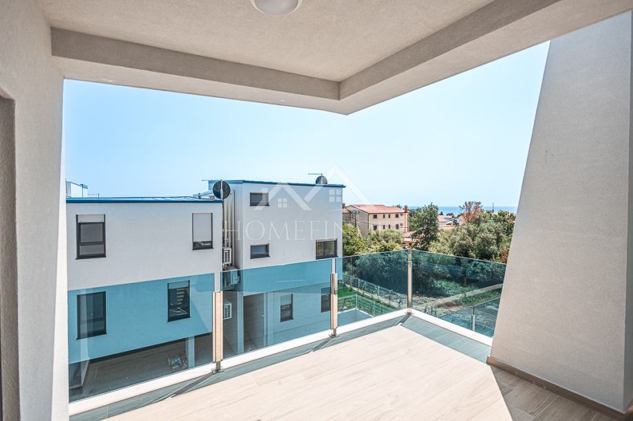 U mjestu Lovrečica, tik uz more i svega nekoliko minuta vožnje od Umaga, smješten je ovaj dvosoban stan u suvremenoj novogradnji s ukupno četiri stambene jedinice.