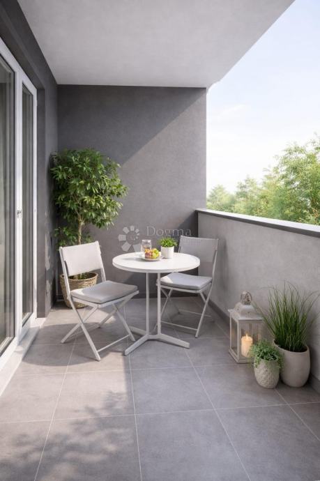 Na prodaju je moderan stan u visokokvalitetnoj novogradnji, ukupne stambene bruto površine 45 m², odnosno neto 42 m² stambeno, smješten na trećem katu zgrade s liftom.