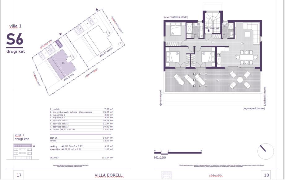 Jedan od istaknutih stanova u ovom projektu je Stan S6, smješten na drugom katu vile 2 , ukupne bruto površine od 101 m2, Raspored stana osmišljen je kako bi pružio maksimalnu udobnost i funkcionalnost. Prostrani otvoreni prostor uključuje otvoreni prostor kuhinje, blagovaonice i dnevni boravak, stvarajući idealan ambijent za obitelj i druženja. Stan također sadrži tri spavaće sobe te potpuno opremljena kupaonica i dodatni wc