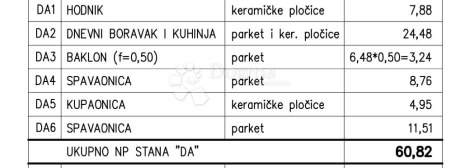Na prodaju je moderan stan u visokokvalitetnoj novogradnji, ukupne stambene bruto površine 64 m², odnosno neto 61 m² stambeno, smješten na trećem katu zgrade s liftom.