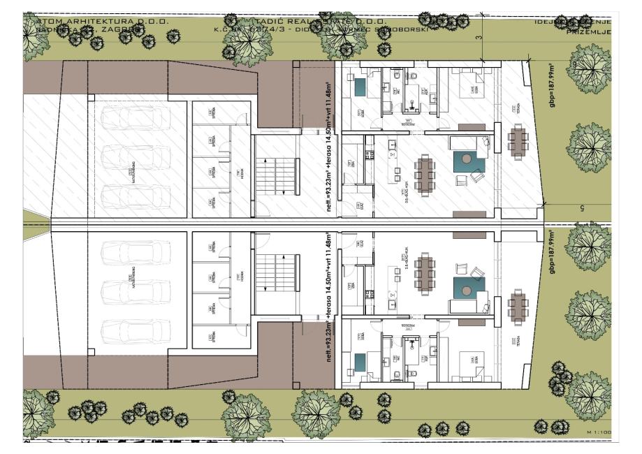 -PRIZEMLJE 2: 93,23m2 + 14,50m2 terasa + dvorište. +2PM