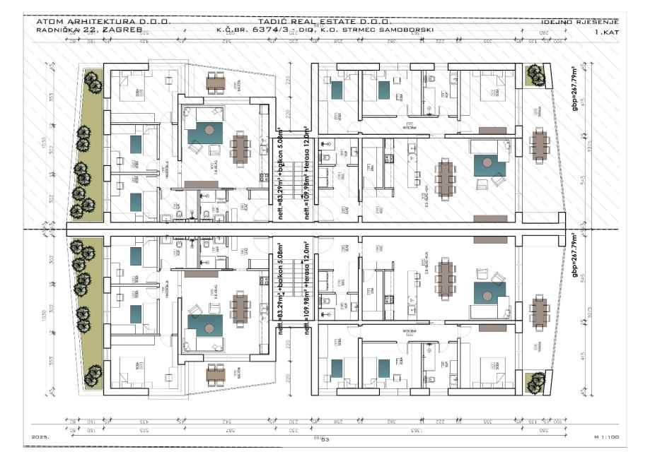 -1KAT: BR.6: 109,98m2 + 12m2 balkon+2PM