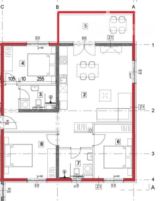 Električne rolete i komarnici postavljeni su na svim otvorima. Staklena stijena je od aluminija sa troslojnim staklom, a ostali prozori su od PVC-a. Kvalitetna stolarija ima dobru toplinsku i zvučnu izolaciju te osigurava maksimalan dotok svjetlosti.