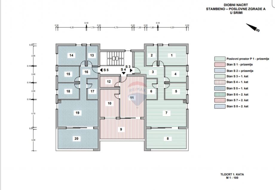Prodaje se stan S5 na prvom katu novogradnje u naselju Srima pored Vodica. Stan ukupne površine 81.71m2 sastoji se od kuhinje spojene s blagovaonicom i dnevnim boravkom, hodnika, tri spavaće sobe, dvije kupaonice i natkrivene terase veličine 17.10m2.