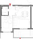 Sastoji se od ulaznog prostora, kupaonice, prostranog dnevnog boravka s kuhinjom i blagovaonom te spavaćom sobom.