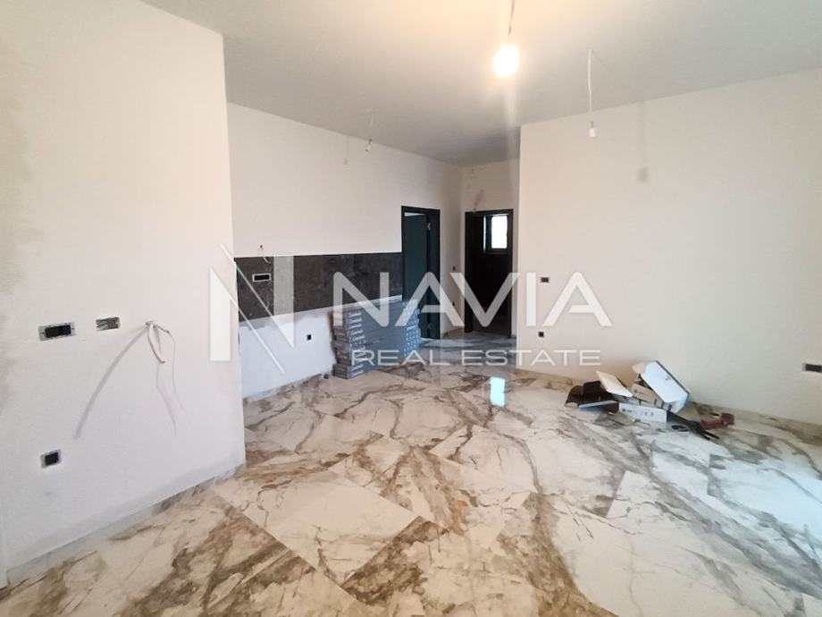 Ovaj suvremeno dizajniran stan, udaljen samo 400 metara od mora, pruža sve što vam je potrebno za ugodan život ili savršen odmor. Nalazi se na prvom katu stambene zgrade i sastoji se od dnevnog boravka, kuhinje i blagovaonice u otvorenom konceptu, moderno opremljene kupaonice, dvije prostrane spavaće sobe, hodnika koji povezuje sve prostorije, terase idealne za opuštanje. Površina stambenog prostora iznosi 51,50 m2, dok površina terase iznosi 15 m2.