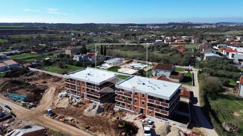 U već navedenom naselju, smjestio se ovaj novi projekt visokokvalitetne novogradnje! Projekt će se sastojati od ukupno 4 zgrade, od kojih će tri biti s po 15 stambenih jedinica te zadnja, četvrta, s 13 stambenih jedinica. Projektiranje, dizajn i arhitekturu potpisuje najveći projektantski studio u Puli koji djeluje i puno šire te ih krasi mnoštvo izvanrednih projekata! Koncept zgrada osmišljen je kao moderne dvokatnice sastavljene od stanova u prizemlju s dijelom dvorišta te stanovima na 1. i 2. katu s prostranim terasama.