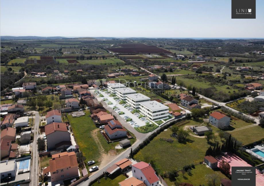 U već navedenom naselju, smjestio se ovaj novi projekt visokokvalitetne novogradnje! Projekt će se sastojati od ukupno 4 zgrade, od kojih će tri biti s po 15 stambenih jedinica te zadnja, četvrta, s 13 stambenih jedinica. Projektiranje, dizajn i arhitekturu potpisuje najveći projektantski studio u Puli koji djeluje i puno šire te ih krasi mnoštvo izvanrednih projekata! Koncept zgrada osmišljen je kao moderne dvokatnice sastavljene od stanova u prizemlju s dijelom dvorišta te stanovima na 1. i 2. katu s prostranim terasama.