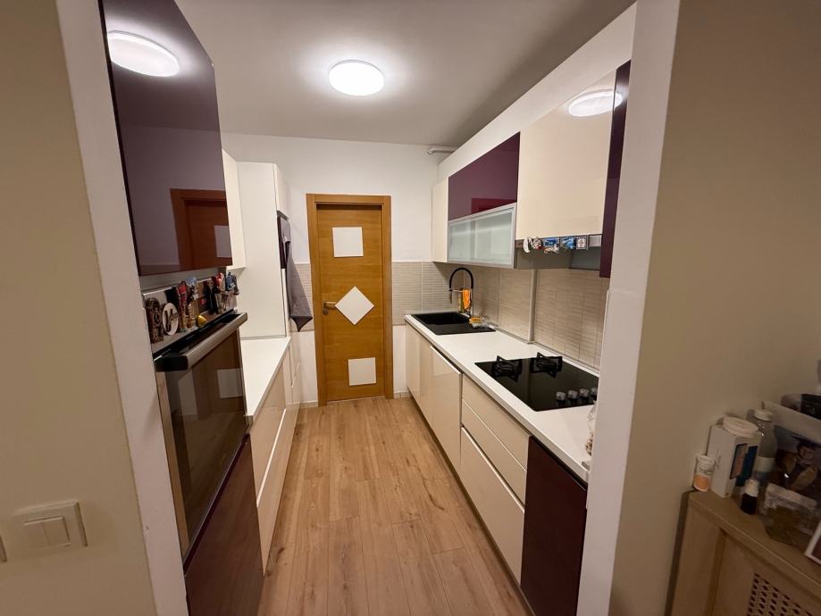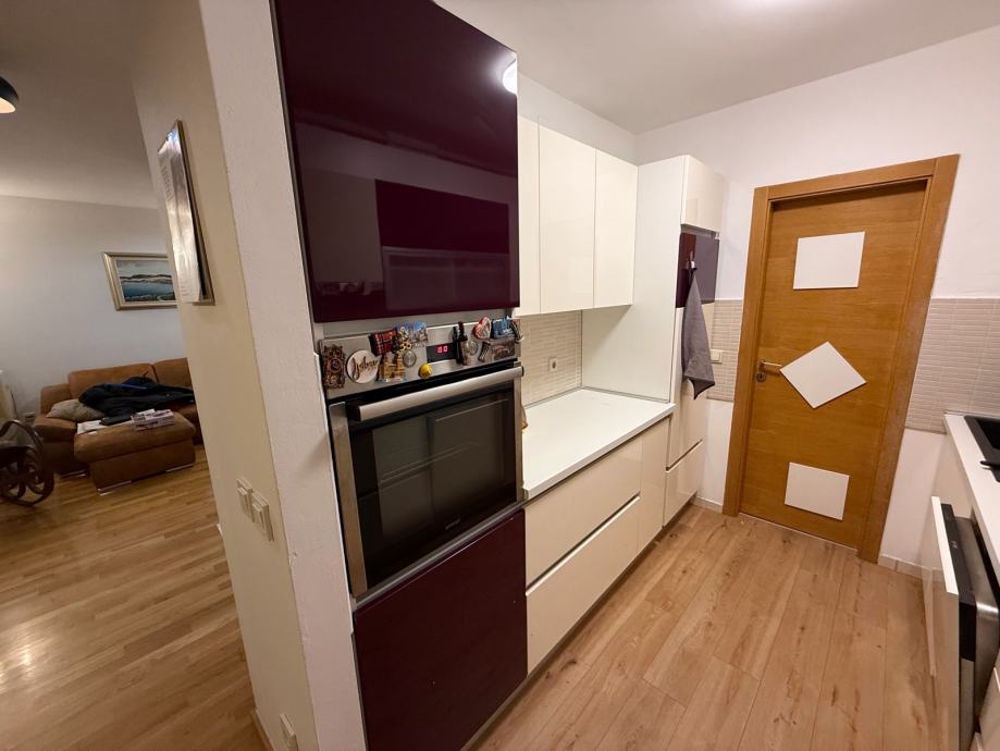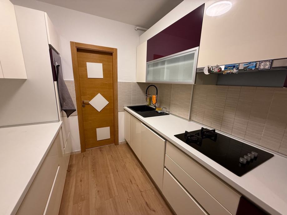 • Kuhinja sa svim aparatima: hladnjak, pećnica, indukcijska ploča (2 ringle) + plin (2 ringle), mikrovalna, perilica suđa