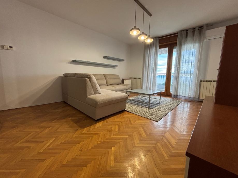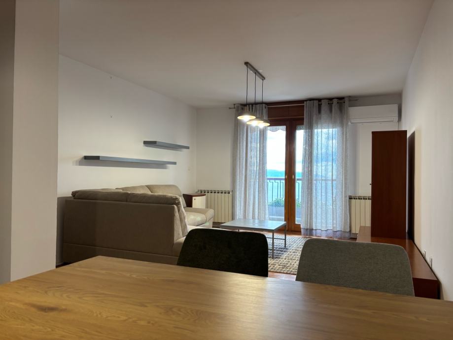 Dnevni boravak s blagovaonicom prostire se prema lođi s pogledom na more i Kvarnerski zaljev. Kuhinja je opremljena. Stan je južno-sjeverne orijentacije, što znači dobra osunčanost kroz veći dio dana.