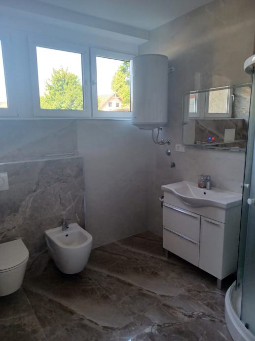 Iznajmljuje se 2-soban stan u centru Ogulina, u Preradovićevoj ulici 2. Stan je u prizemlju, ima garažu i drvarnicu. U blizini su autobusni i željeznički kolodvor i osnovna škola. Stan je potpuno renoviran 2025. godine. Površine je 55 m², a sastoji se od spavaće sobe, dnevnog boravka, kuhinje s ostavom i lođom, kupaonice i hodnika. Stan nije namješten. Grijanje je na drva. Režije su oko 100 EUR. Zajedničku pričuvu plaća vlasnica stana.
