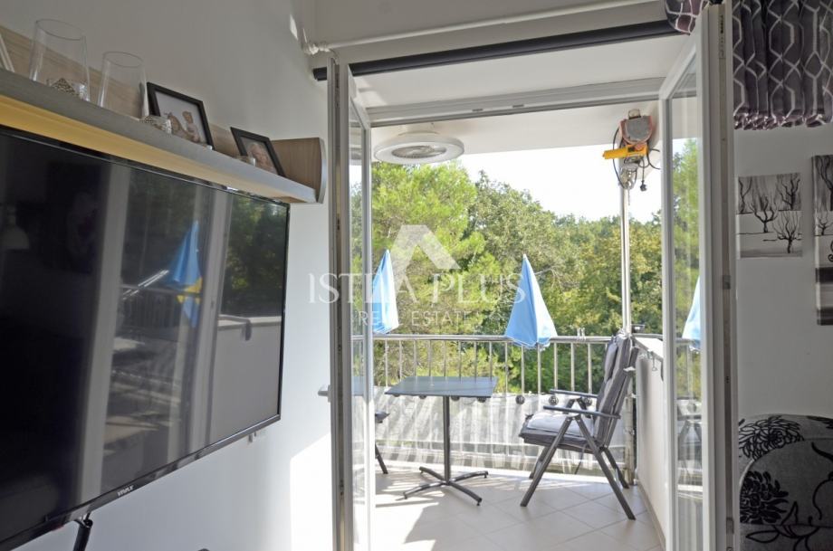 Ima balkon s kojeg se pruža pogled na prirodni krajobraz i dugotrajno zelenilo.