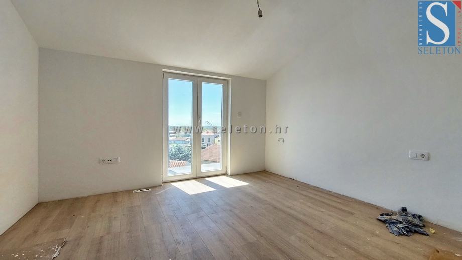 Prodaje se stan površine 82 m2, sastoji se od kuhinje, dnevnog boravka i blagovaonice, hodnika, 3 spavaće sobe, kupaonice, WC-a i 2 terase. Stan se nalazi na 3. katu zgrade, ima 4 klima uređaja, protuprovalna vrata, podno grijanje u kupaonici, pripada mu jedno spremište u podrumu zgrade površine ca 6 m2 i jedno parkirno mjesto ispred zgrade. Stan je udaljen ca 7 km od Poreča i mora, u blizina je trgovina, škola i vrtić.