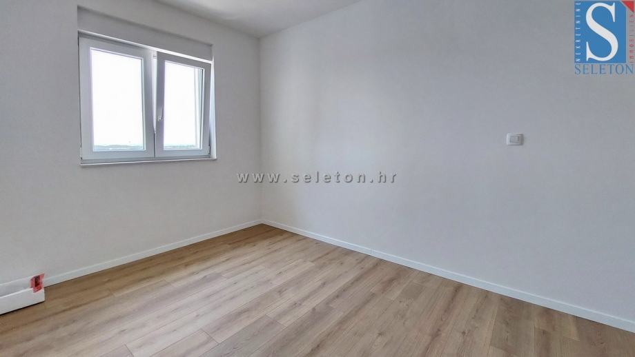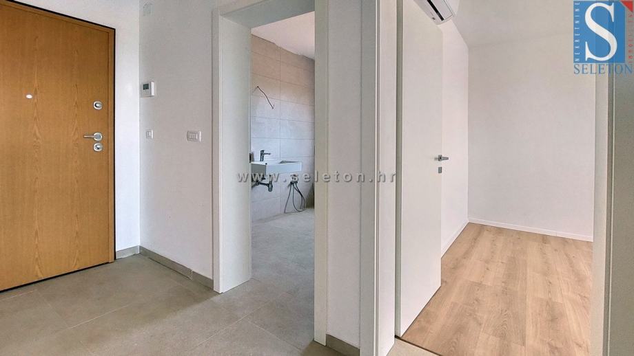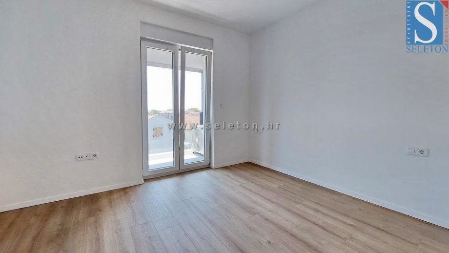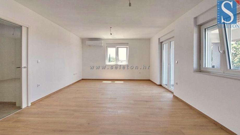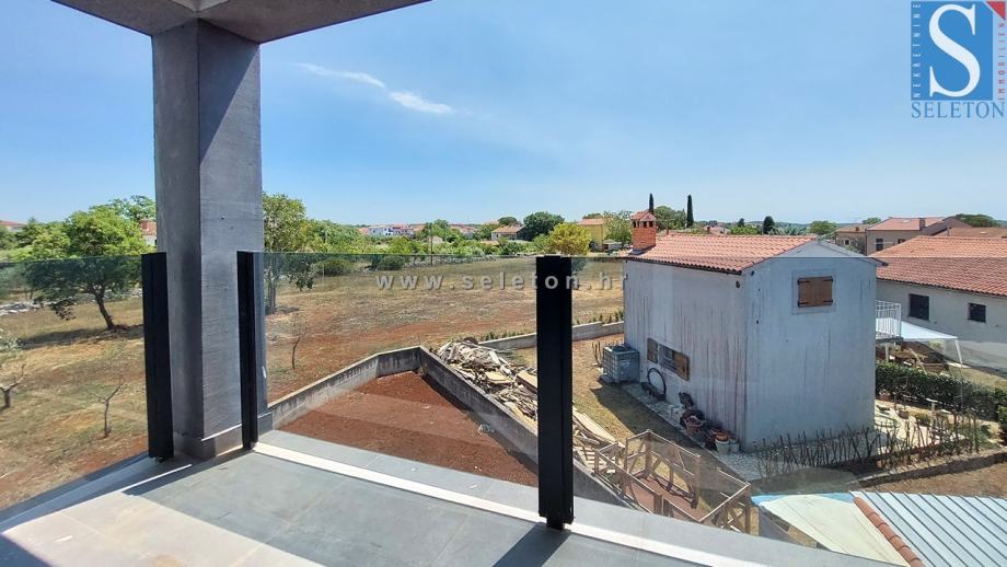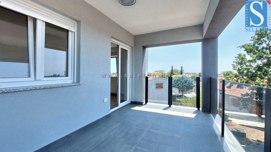 Prodaje se novi stan površine 82 m2, sastoji se od kuhinje, dnevnog boravka i blagovaonice, hodnika, 3 spavaće sobe, kupaonice, WC-a i 2 terase. Stan se nalazi na 2. katu zgrade, ima 4 klima uređaja, protuprovalna vrata, podno grijanje u kupaonici, pripada mu jedno spremište u podrumu zgrade površine ca 6 m2 i jedno parkirno mjesto ispred zgrade. Stan je udaljen ca 7 km od Poreča i mora, u blizina je trgovina, škola i vrtić.
