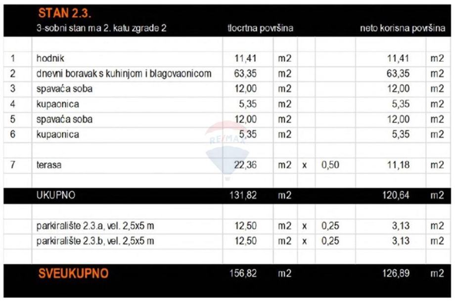 Ukupna netto površina: 126,89 m2