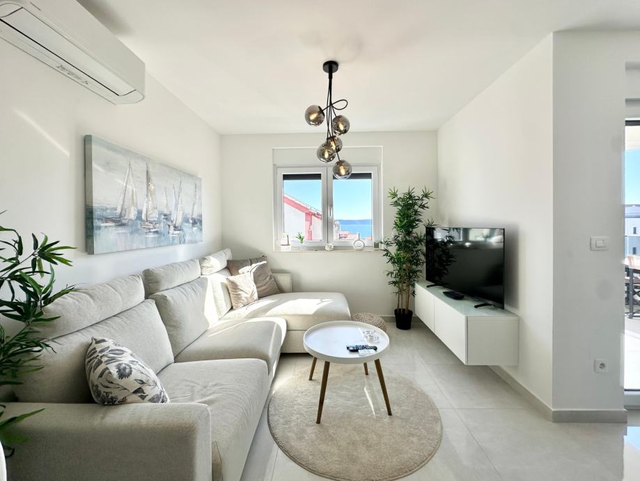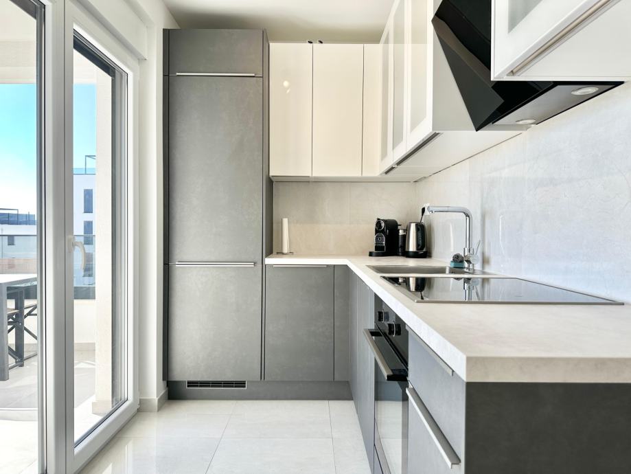 Otkrijte ovaj elegantno uređen penthouse površine 56 m², smješten u atraktivnom naselju Rastići u Okrugu Gornjem na otoku Čiovu. Stan je pažljivo osmišljen kako bi pružio maksimalnu udobnost i opuštanje te se sastoji od dvije prostrane spavaće sobe, jedne kupaonice te otvorenog koncepta kuhinje, blagovaonice i dnevnog boravka. Dodatnu vrijednost nekretnini daju natkrivena terasa površine 5,13 m², balkon od 3,96 m² te privatna krovna terasa s prekrasnim pogledom, idealna za uživanje u mediteranskom načinu života. Stanu pripada i osigurano parkirno mjesto. Smješten u mirnom priobalnom okruženju. Cijena nekretnine iznosi 350.000 €.