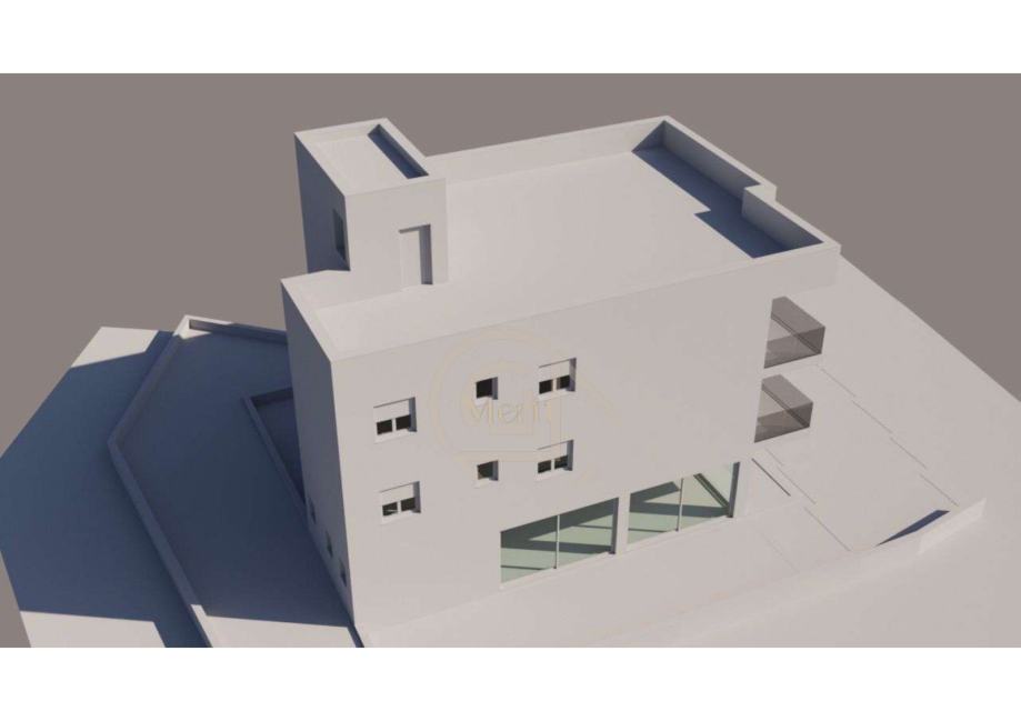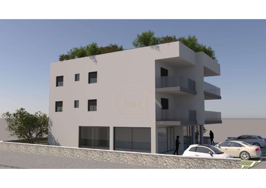U prizemlju se nalazi poslovni prostor, a na višim katovima četiri trosobna stana (dvije spavaće sobe i dnevni boravak).