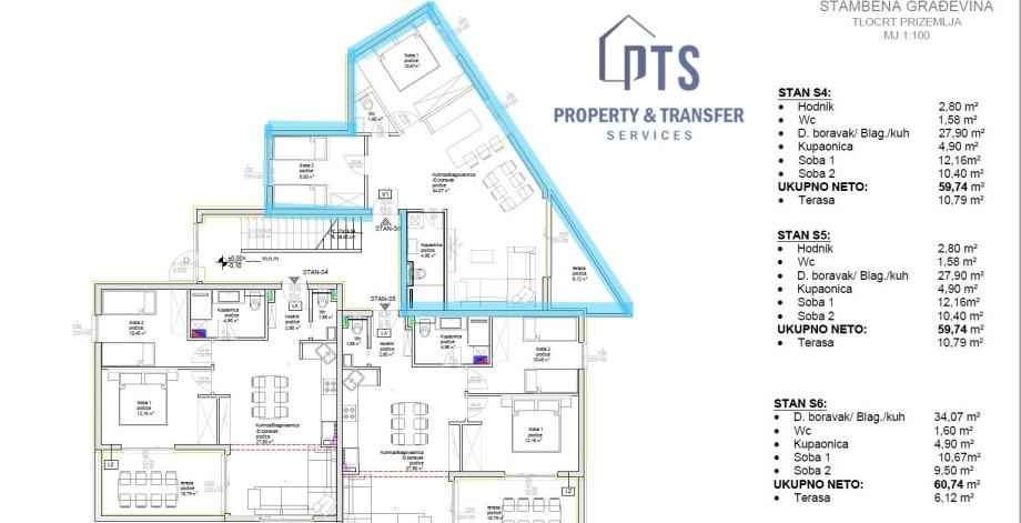 UKUPNO NETO: 60,74 m² + Terasa: 6,12 m²