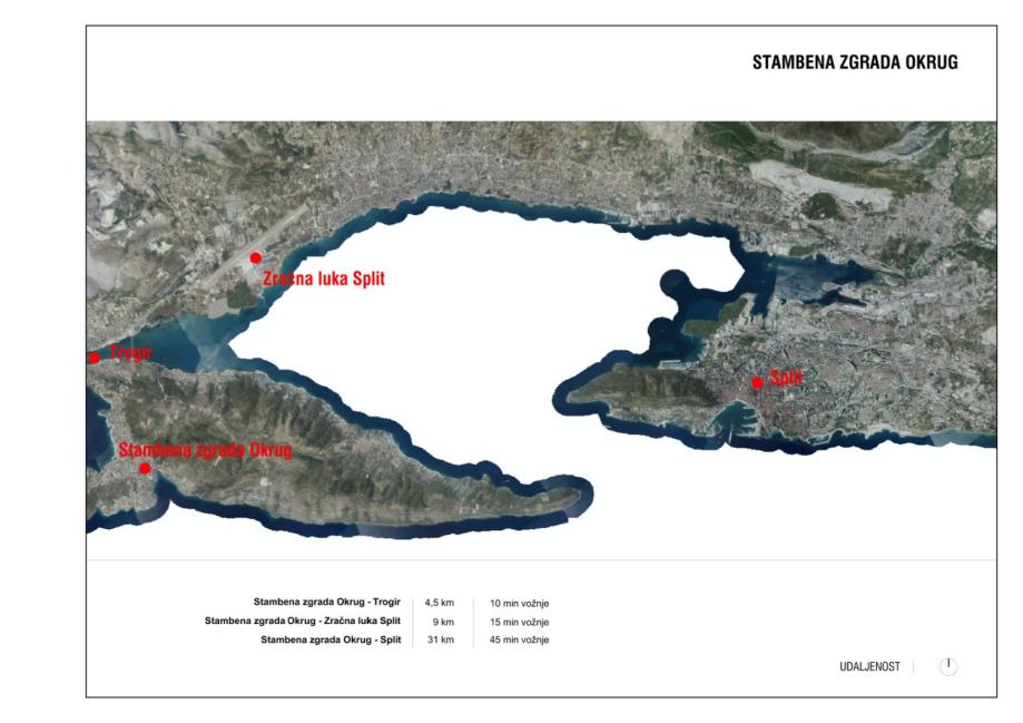 Blizina međunarodne zračne luke Split 9km,Trogir 4,5km ,Split 31km