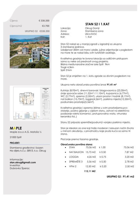 113,11m2 Ukupno S2: 91,41m2