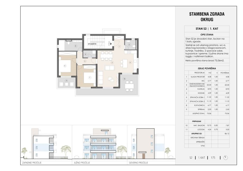 Stan S2 nalazi se u manjoj zgradi u izgradnji sa ukupno 3 stambene jedinice.