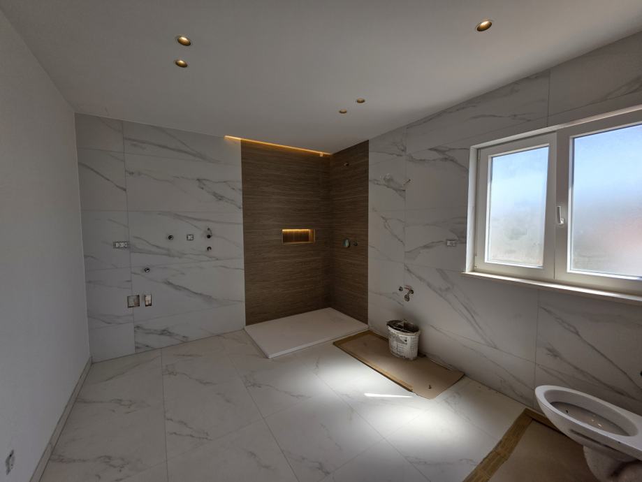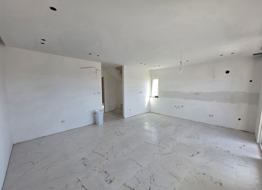 • Raspored prostorija: 3 spavaće sobe, 2 kupaonice, dnevni boravak s kuhinjom i blagovaonicom, hodnik, ostava