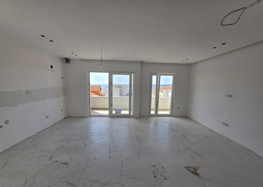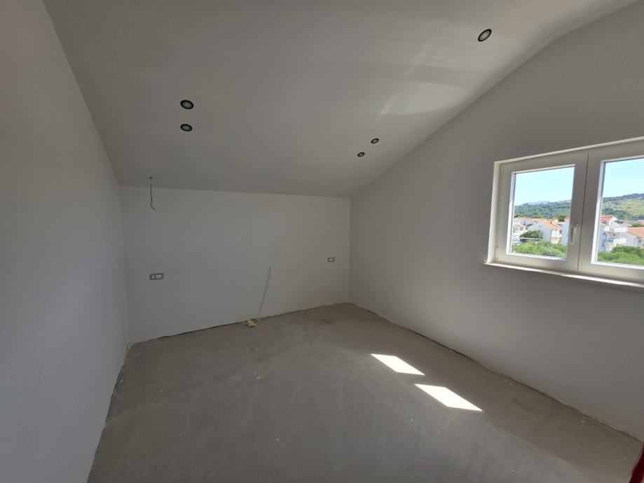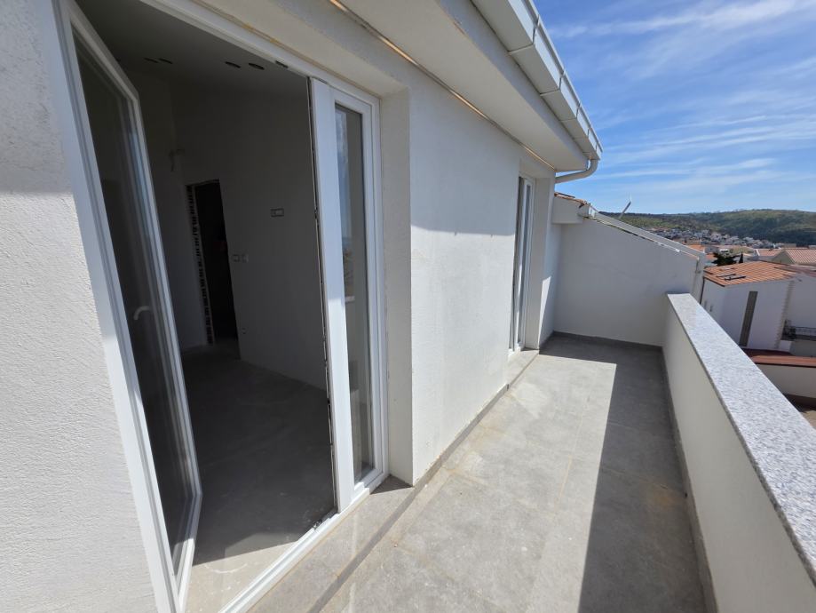 Prodaje se moderan i prostran dvoetažni stan površine 92,14 m² na atraktivnoj lokaciji u Okrugu Gornjem. Stan se nalazi na zadnjem katu zgrade te nudi savršen spoj funkcionalnosti, komfora i mediteranskog ugođaja.