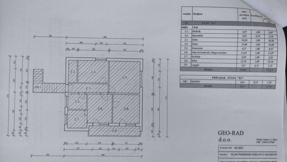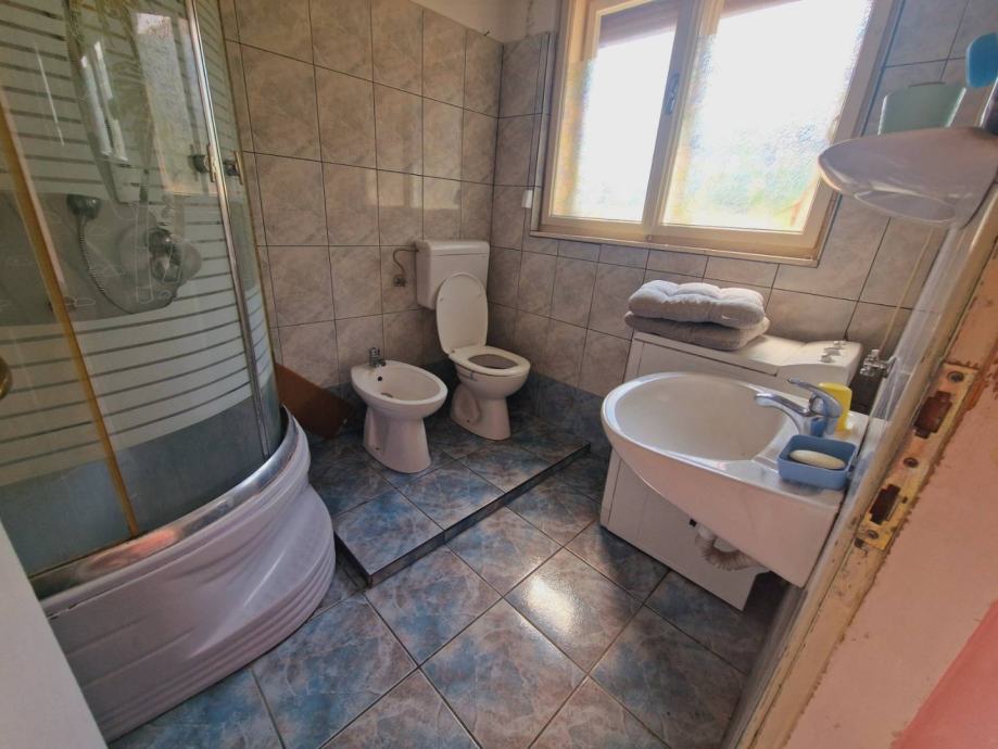 Imamo u ponudi prostran stan od 97m2, sa lijepim panoramskim pogledom, sastoji se od tri spavaće sobe, dnevnog boravka, kuhinje, kupaonice, hodnika, balkona, dijela okućnice na kojoj se nalazi konoba sa velikom terasom te još jedan zaseban objekt uređen kao stan, garsonijera površine 30m2!!