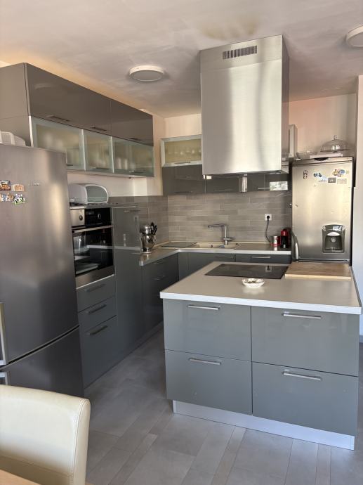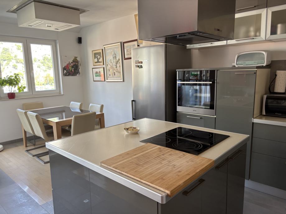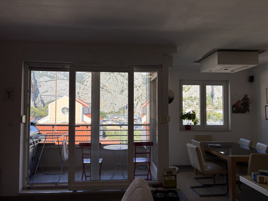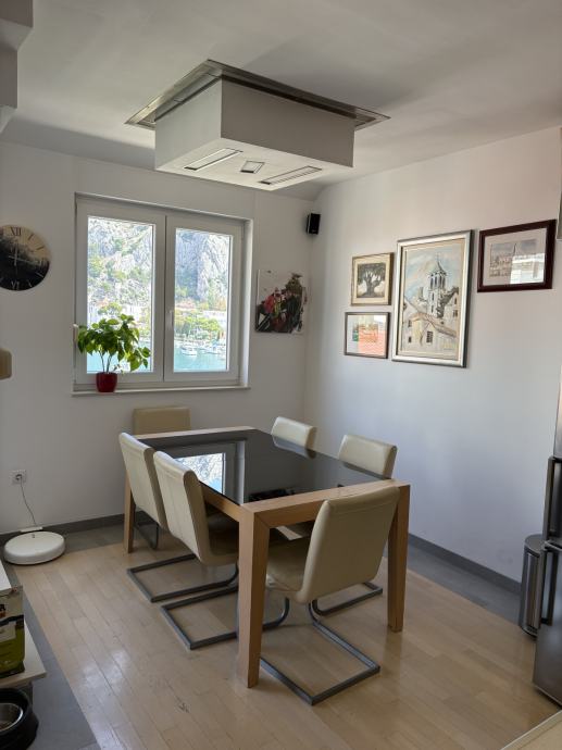 Prodaje se stan na odlicnoj lokaciji u Omisu. Stan je napravljen kao dvoetazni s prekrasnim pogledom na Omis i rijeku Cetinu. Nalazi se na trecem katu zgrade bez lifta. Na prvoj etazi je kuhinja, blagavaonica, dnevni boravak, balkon, malo kupatilo i spavaca soba. Na drugoj etazi su dvije spavace sobe, veliko kupatilo i garderoba. Stanu je napravljena i treca etaza kao galerija na kojoj se nalaze ormar i trosjed na razvlacenje te ima krovni prozor.