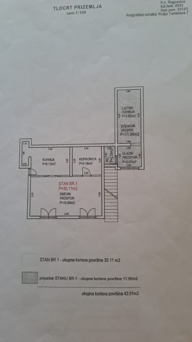 stan se sastoji od: dnevnog prostora, kupaonice i kuhinje, te sporednog izdvojenog dijela : ulazni prostor,